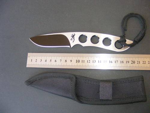 This Browning survival fixed blade knife is well designed; well made & a high quality product. It also comes with a paracord wrist sling & a nylon belt strap on sheath. Total length: 203mm.