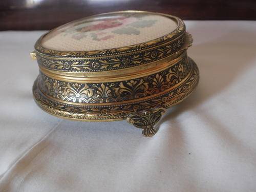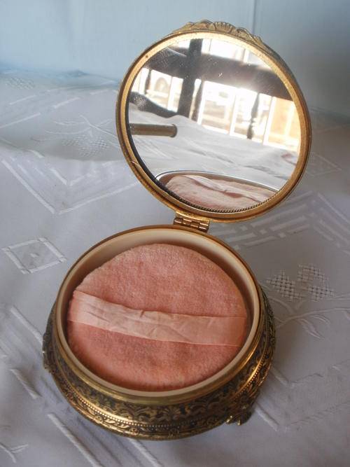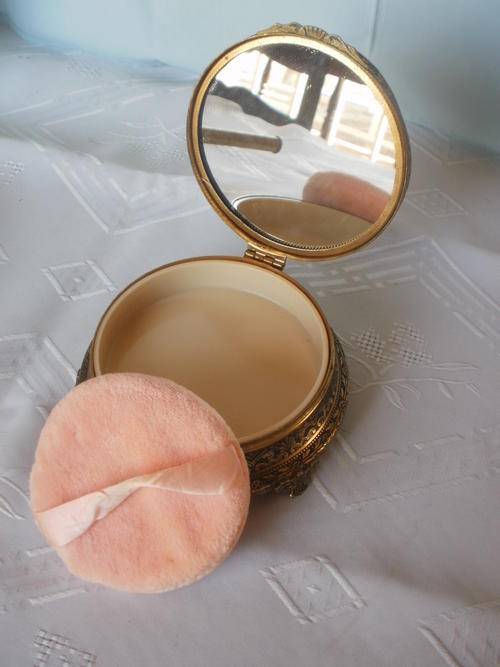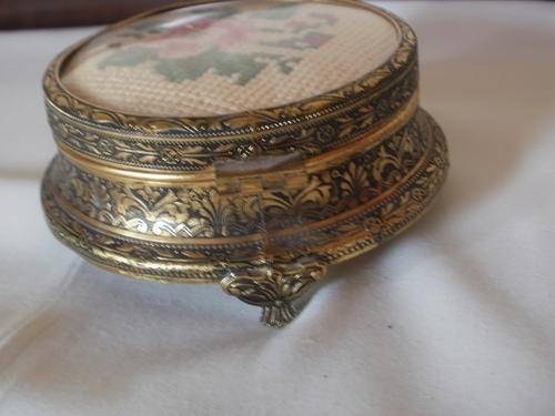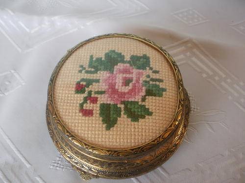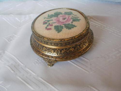 BRUSH & POWDER BOX WITH EMBROIDERED LID