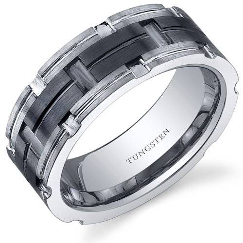 Brushed Finished Mosaic Design Center Black Mens Tungsten Carbide Wedding Band