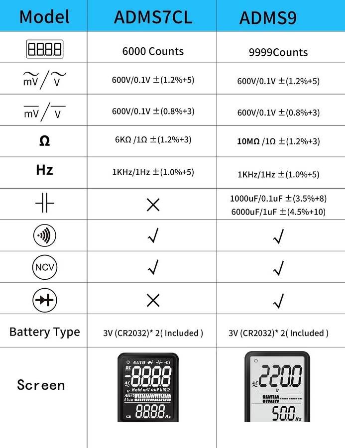 Description: Model:ADMS9 Item type:Digital Multimeter [Ultra Thin Design]: The new generation of our multimeter ever - only 1.2cm thickness, lighter, and with larger LCD display, which looks like a phone, You can make a joke with your friend that this is a cell phone [ Simple/convenient/easy to use ]: Multimeter with probes design lets you test safely and efficiently -no need to plug in and out probes, which not only can save learning and test time, but also prevent wrong insertion of ports [Flashlight design]: lets you test efficiently and comfortably anywhere, indoors and outdoors, day and night. Hang hole design make it more portable Package Include: 1 * Digital Multimeter 1 * Pair of Test Leads 1 * Lanyard 1 * User Manual