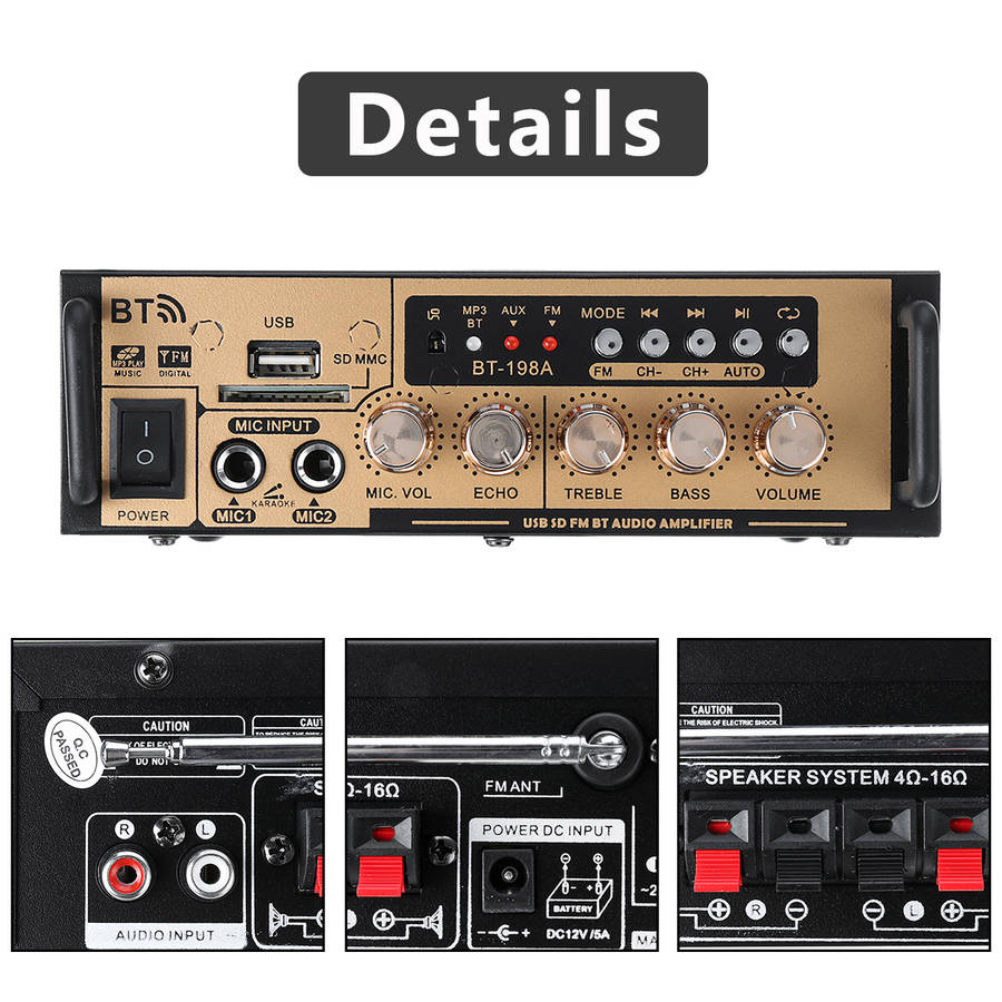 BT-198A 300W+300W Power Car Amplifier HIFI Digital Audio bluetooth AMP FM Radio For Car/Home/Theate