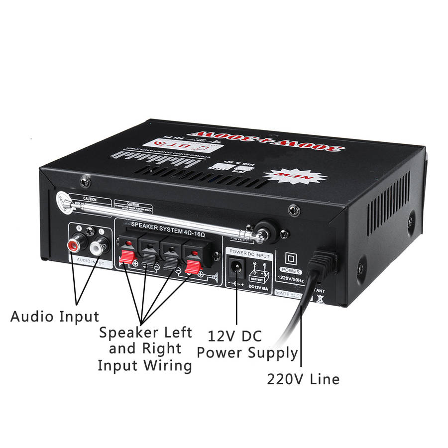 ?BT-198A 300W+300W Power Car Amplifier HIFI Digital Audio bluetooth AMP FM Radio For Car/Home/Theater