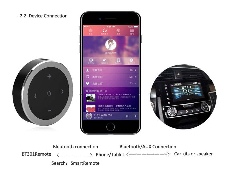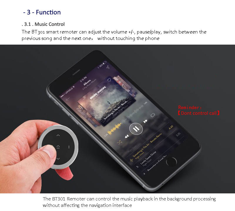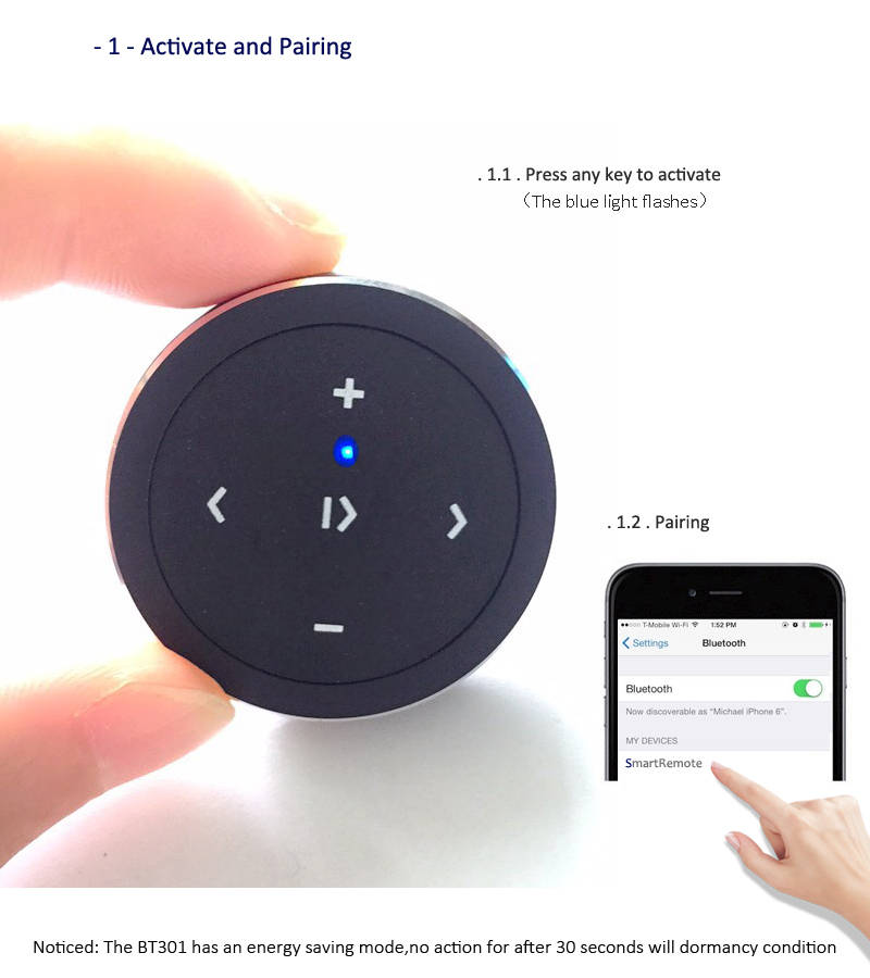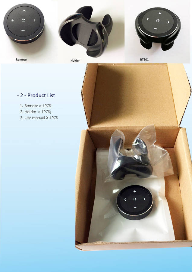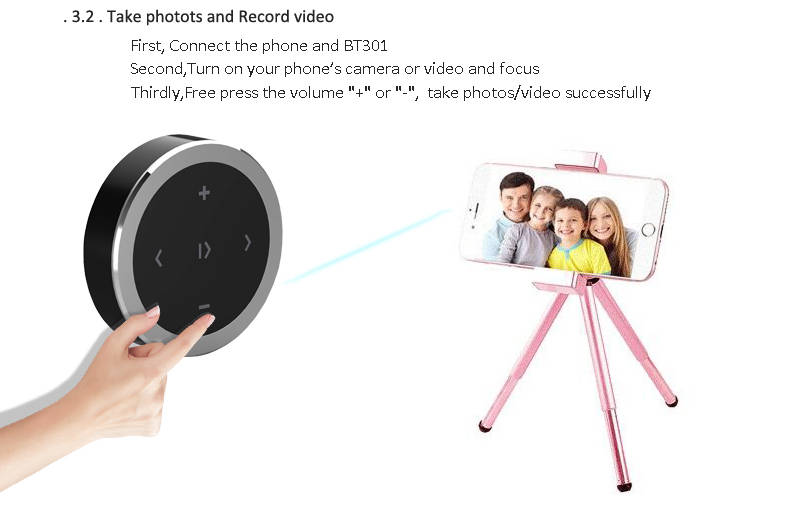 The above functions are controlled by BT301 (10m range) without touching the phone/tablet