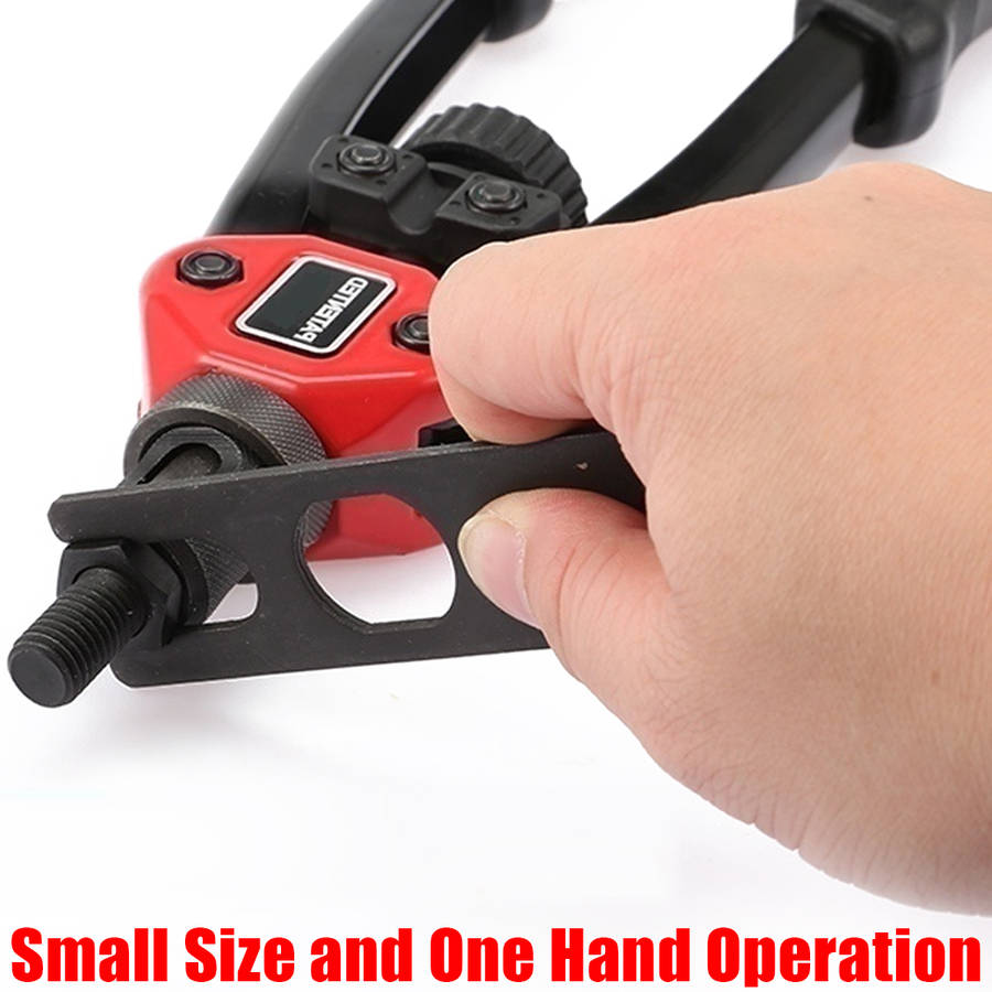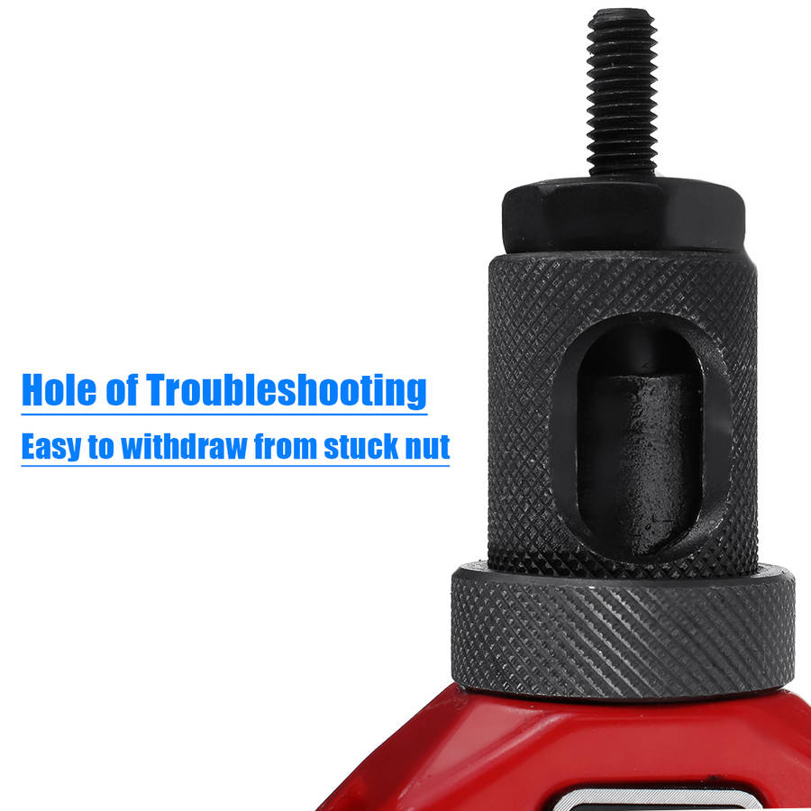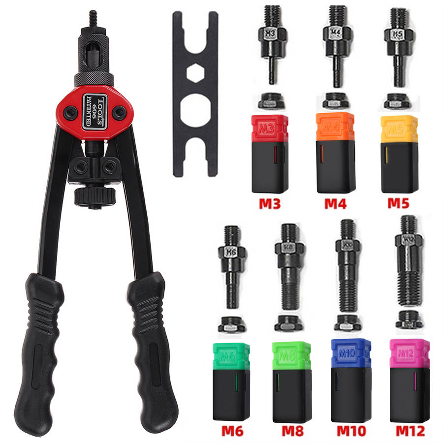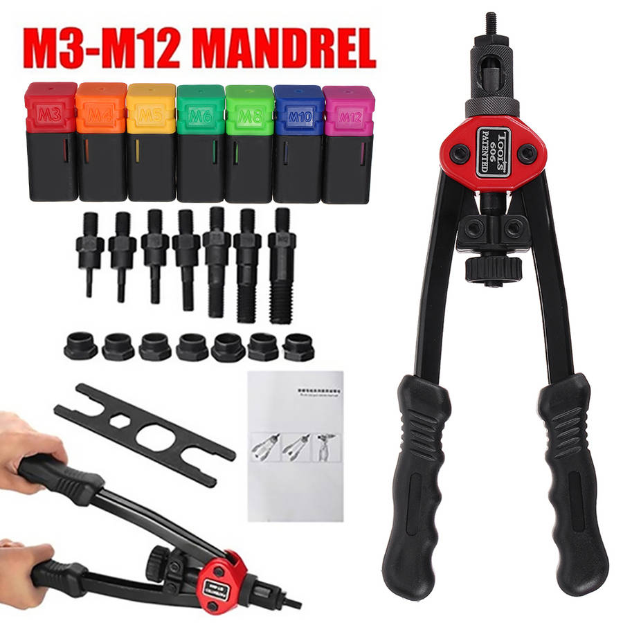 Description: This is the most labor-saving riveting Tool on the market. Ergonomic handles with double compound hinges maximizing leverage and for easy operation. Delicate Shape heavy duty hand riveter is ideal for working in hard-to-reach areas. Great for off-road / modifications Features: - Rivet nut range: M3/M4/M5/M6/M8/M10/M12 - The internal use of fixed sliding set to facilitate the removal or replacement of the screw - Hole of troubleshooting, easy to withdraw from stuck nut - Thickened heat treatment handle - Shockproof design eliminates the impact of the riveter on the arm during operation Specification: Rivet nut range: M3/M4/M5/M6/M8/M10/M12 Color: As the picture show Item Length: 30cm/11.8inch Package included: 1 x Rivet Nut Tool 7 x Replacement Part (M3/M4/M5/M6/M8/M10/M12) 1 x Wrench Details Pictures: