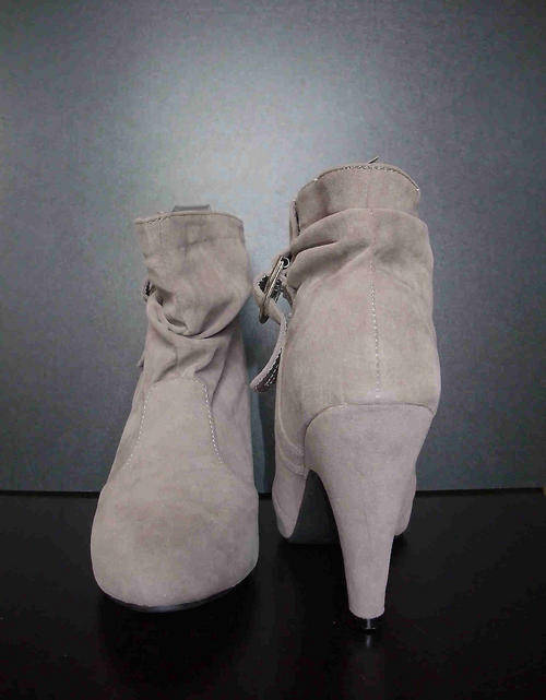 BUCKLE RUCHED SUEDE HIGH HEEL ANKLE BOOTS CAMEL 4