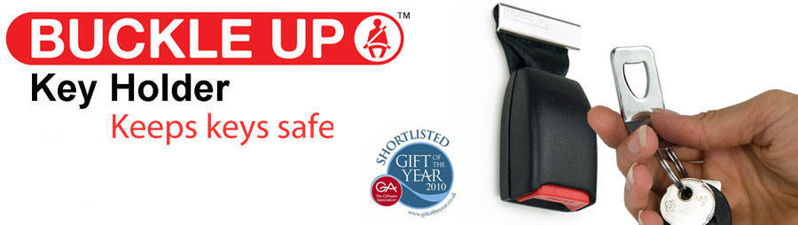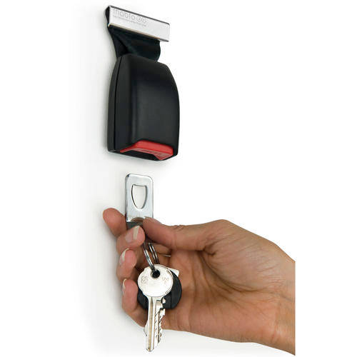 This wall mounted key holder is produced from discontinued car seat belt buckles.