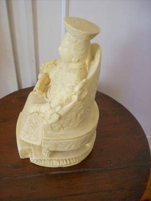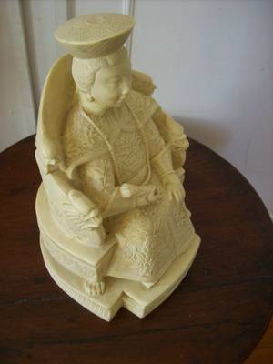 Lovely Buddha, I think it is made of resin, this one is sitting on a throne, it is in good condition & measures 235mm high & 130mm across. as I do not know much about this figure forgive me if it is not a Buddha. Heavy.