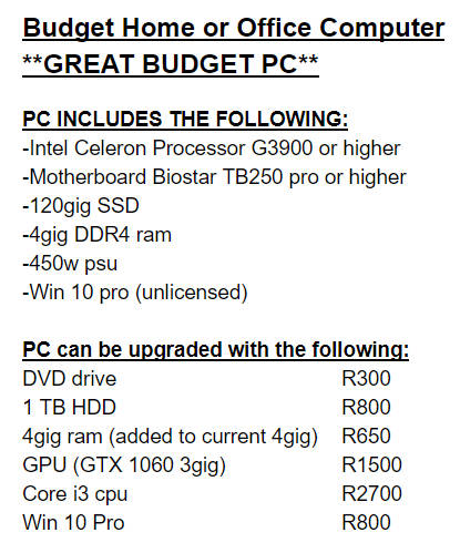 Budget Home or Office Computer **GREAT BUDGET PC**