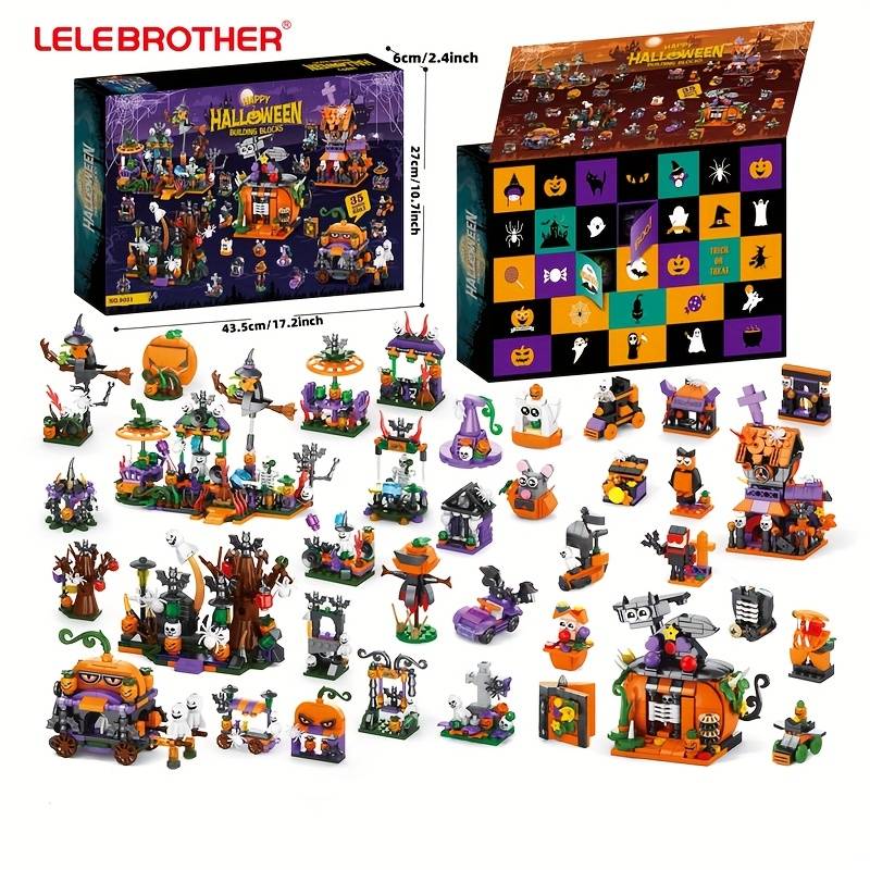 (Specifications are as detailed here. If there are any errors or questions, please contact the buyer. Thank you for viewing.) Note: These building blocks are semi-finished and require self-assembly. They are perfect as gifts for friends, and can be assembled and sent to friends as a thoughtful gift. 1057pcs Halloween Mega Set Pumpkin House Ghost Full Building Blocks Set, Mystery Main Material:ABS Theme:Animals,Movie,Fairy Applicable Age Group:6 Years+ Color:Mixed Color