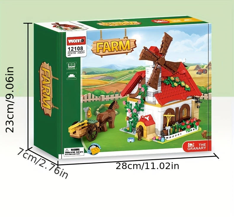 (Specifications are as detailed here. If there are any errors or questions, please contact the buyer. Thank you for viewing.) Note: These building blocks are semi-finished and require self-assembly. They are perfect as gifts for friends, and can be assembled and sent to friends as a thoughtful gift. 720pcs Farm Series Small Building Blocks, Farm Granary Assembly Model, Education Main Material:ABS Theme:Architecture Applicable Age Group:3 Years+ Brand:woma Color:Red