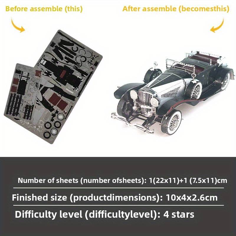 (Specifications are as detailed here. If there are any errors or questions, please contact the buyer. Thank you for viewing.) Note: These building blocks are semi-finished and require self-assembly. They are perfect as gifts for friends, and can be assembled and sent to friends as a thoughtful gift. Mad Model 1935 Duesenberg J-Type Classic Car Full Metal DIY Assembly Kit - 3D Me Material:Metal Applicable Age Group:18 Years+ Color:Silvery Grey