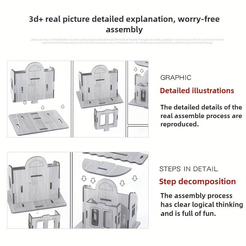 (Specifications are as detailed here. If there are any errors or questions, please contact the buyer. Thank you for viewing.) Note: These building blocks are semi-finished and require self-assembly. They are perfect as gifts for friends, and can be assembled and sent to friends as a thoughtful gift. 3D Wooden Puzzle Building Model, DIY House Kit, Creative Craft Gift for Adults, Educational Objective:Concentration Applicable Age Group:18 Years And Over Major Material:Wood Color:Brick Red,Coffee