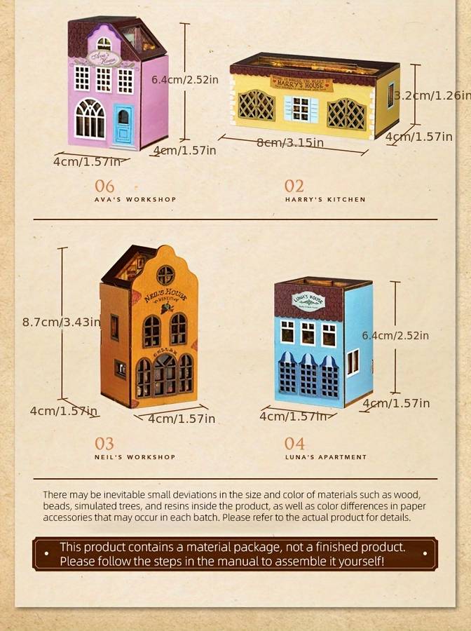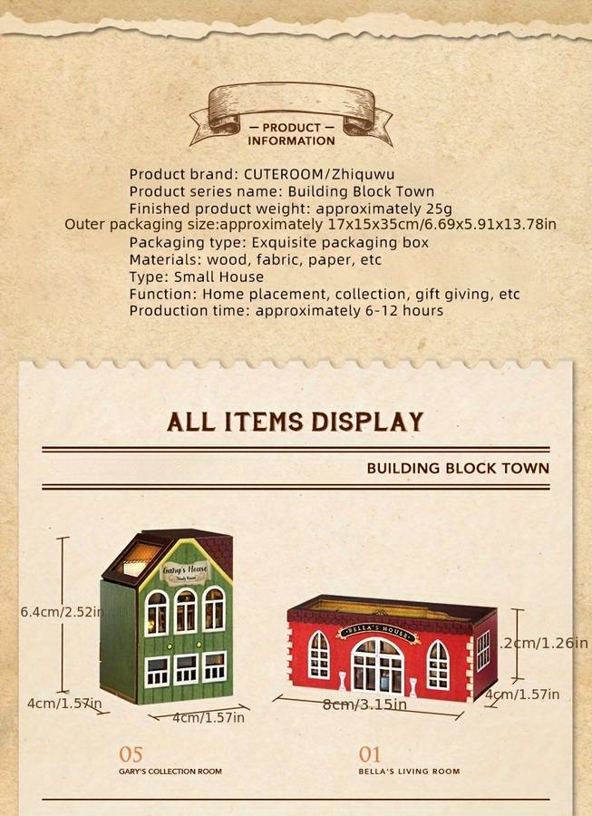 (Specifications are as detailed here. If there are any errors or questions, please contact the buyer. Thank you for viewing.) Note: These building blocks are semi-finished and require self-assembly. They are perfect as gifts for friends, and can be assembled and sent to friends as a thoughtful gift. Diy Handmade Small House Building Block Town Miniature Scene Building Assembly M Educational Objective:Patience Skills Applicable Age Group:14 Years+ Brand:ᅱᅦ놰 CUTE ROOM Major Material:Fiberboard Color:Mixed Color