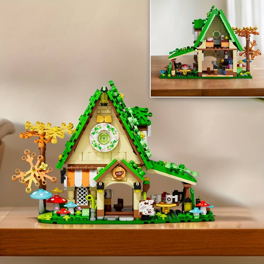 1050ᄀ￀PCS Creative Building Toy Set - Two Fairy Tale Style Houses: Green Coffee &