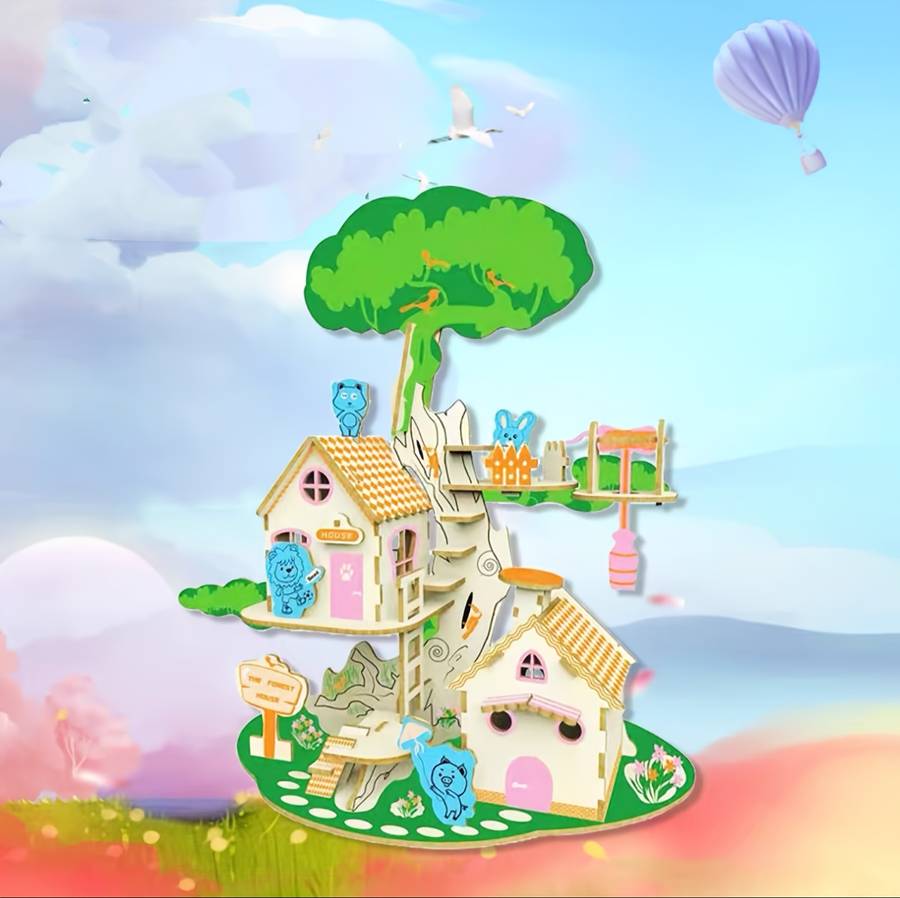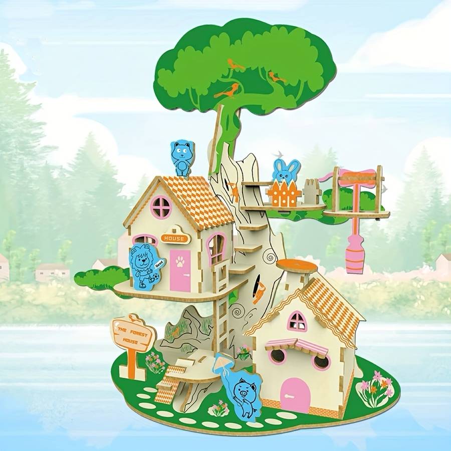 (Specifications are as detailed here. If there are any errors or questions, please contact the buyer. Thank you for viewing.) Note: These building blocks are semi-finished and require self-assembly. They are perfect as gifts for friends, and can be assembled and sent to friends as a thoughtful gift. Forest Animal-Themed Wooden 3D Puzzle - Elegant Castle Model with Playful Bears, Applicable Age Group:14+ Major Material:Wood Color:Mixed Color
