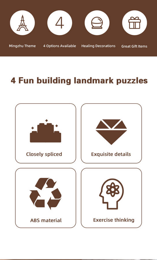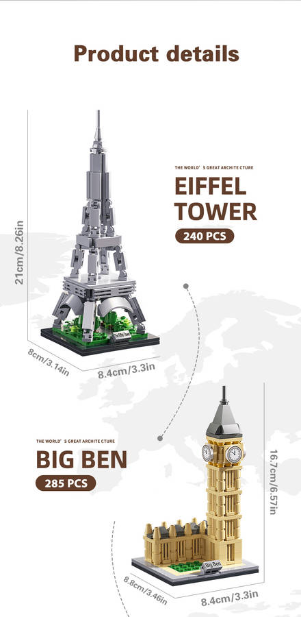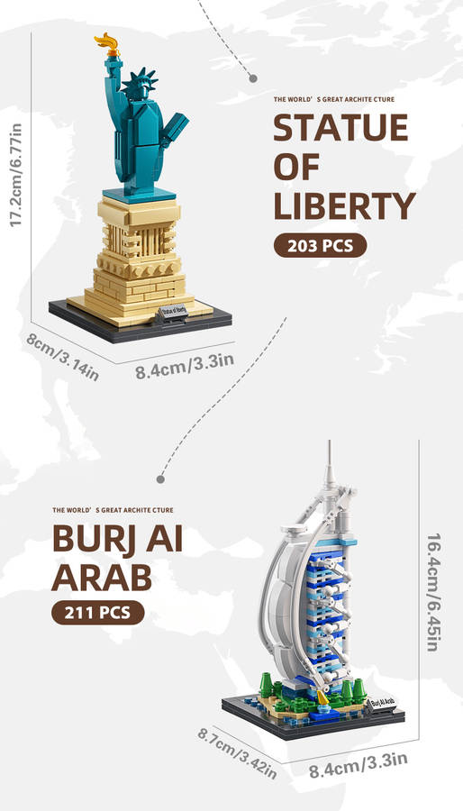 (Specifications are as detailed here. If there are any errors or questions, please contact the buyer. Thank you for viewing.) Note: These building blocks are semi-finished and require self-assembly. They are perfect as gifts for friends, and can be assembled and sent to friends as a thoughtful gift. 939pcs High-Difficulty Micro Building Blocks - World Landmark Architecture 3D Pu Main Material:ABS Applicable Age Group:3 Years+ Color:Mixed Color