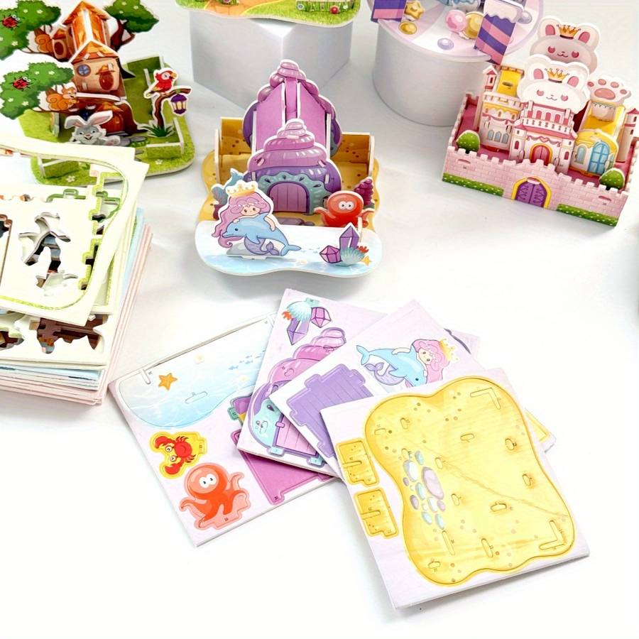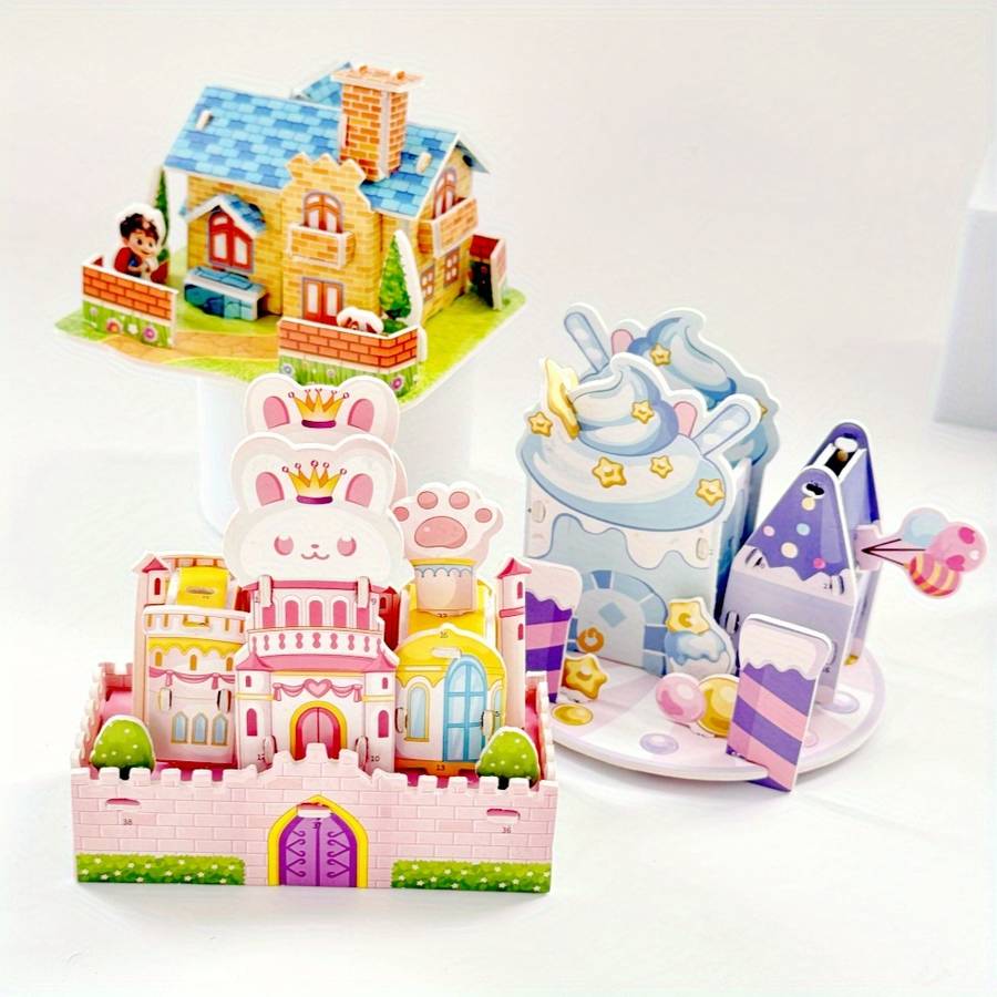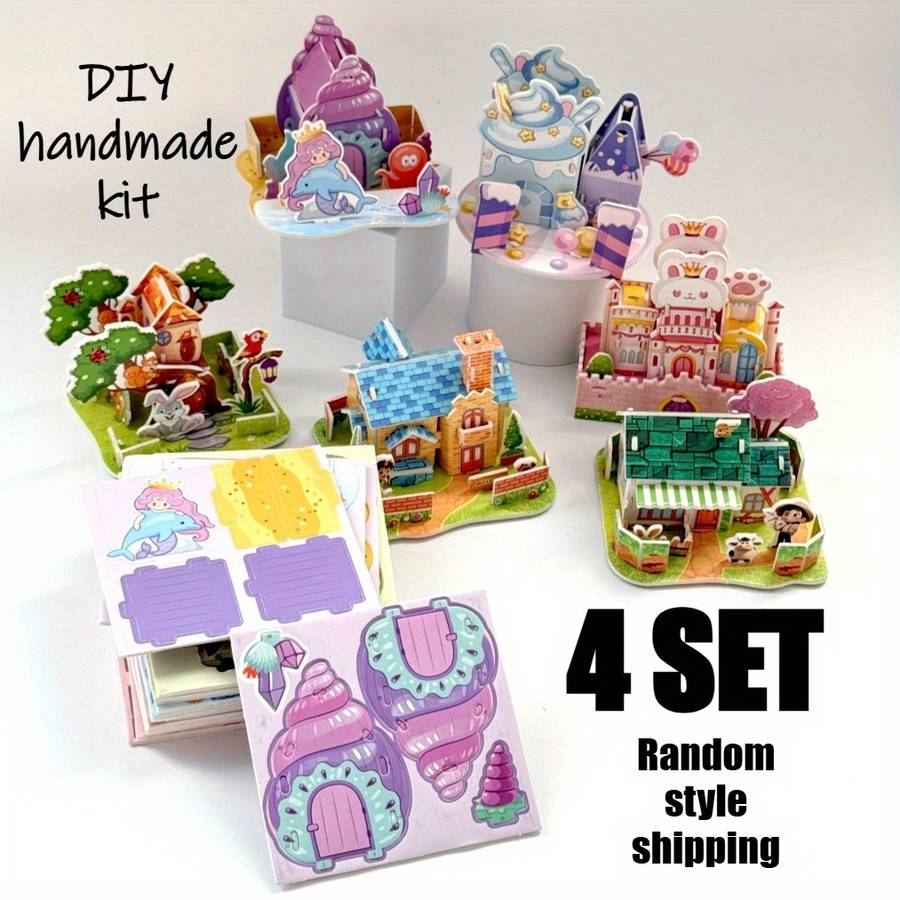 (Specifications are as detailed here. If there are any errors or questions, please contact the buyer. Thank you for viewing.) Note: These building blocks are semi-finished and require self-assembly. They are perfect as gifts for friends, and can be assembled and sent to friends as a thoughtful gift. 4pcs 3D Puzzle Set - DIY Handmade Kit with Mini Scene House, Colorful Pieces & S Major Material:Cardboard Applicable Age Group:3 Years+ Color:Mixed Color
