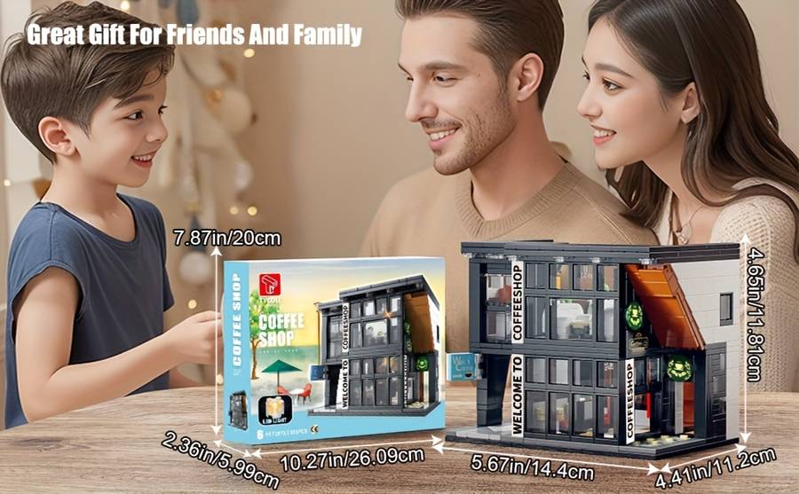 (Specifications are as detailed here. If there are any errors or questions, please contact the buyer. Thank you for viewing.) Note: These building blocks are semi-finished and require self-assembly. They are perfect as gifts for friends, and can be assembled and sent to friends as a thoughtful gift. Coffee Shop Building Blocks Toy Model City Street Scene Coffee House Assembly Ki Main Material:ABS Theme:Architecture Applicable Age Group:6 Years+ Brand:TYCOLE Color:White,Black,Mixed Color
