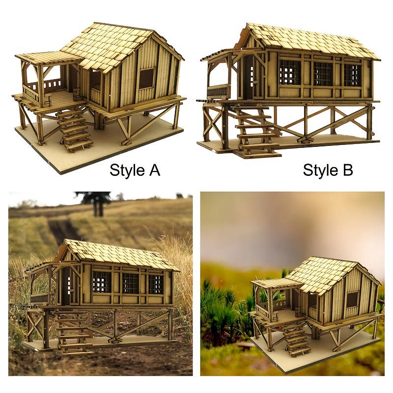 1. Kits: 1:72 scale wooden building house model kits layout layout Unfinished kits.