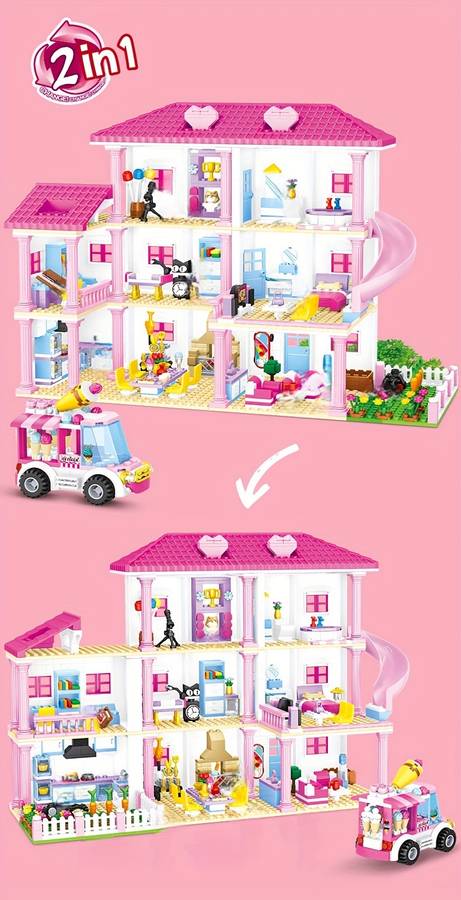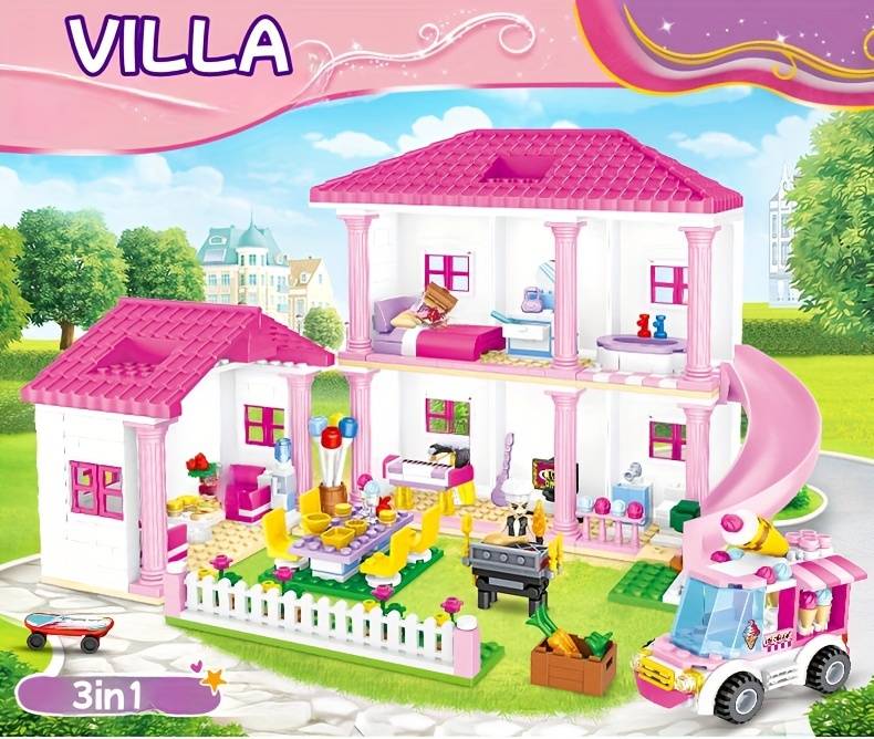 (Specifications are as detailed here. If there are any errors or questions, please contact the buyer. Thank you for viewing.) Note: These building blocks are semi-finished and require self-assembly. They are perfect as gifts for friends, and can be assembled and sent to friends as a thoughtful gift. 3-in-1 Pink & White Villa Castle Building Blocks for Girls ᄄC Creative Summer Hol Major Material:ABS Applicable Age Group:14 Years+ Color:White,Pink Item ID:VB222152