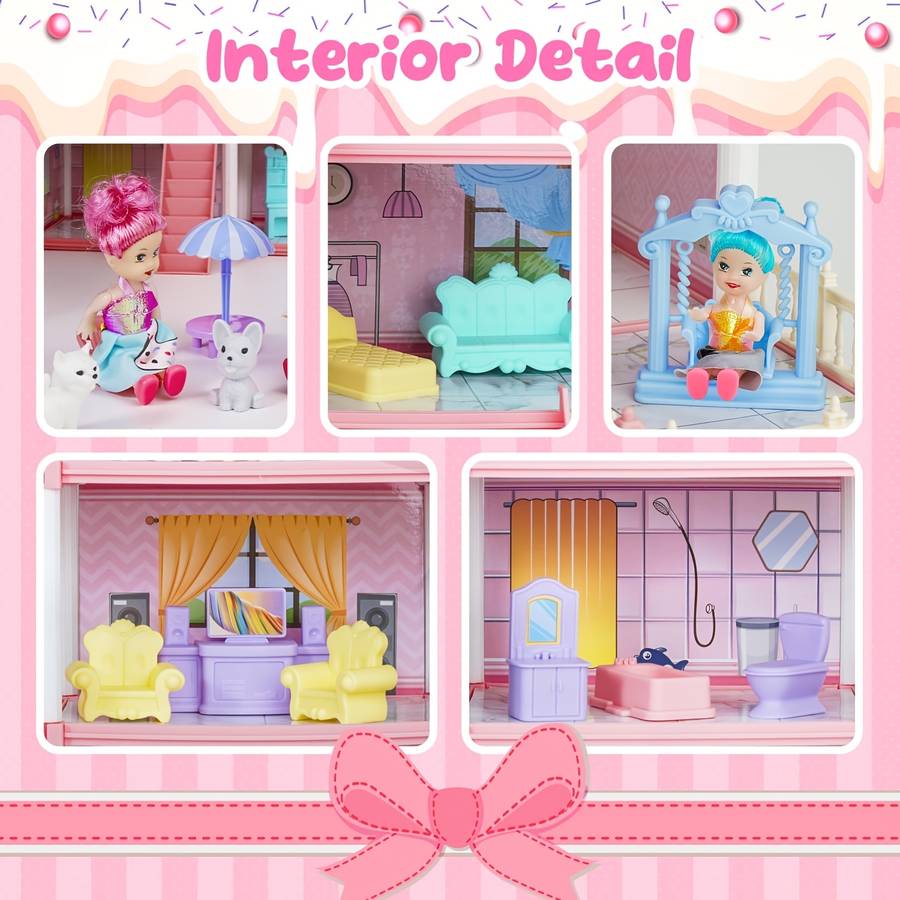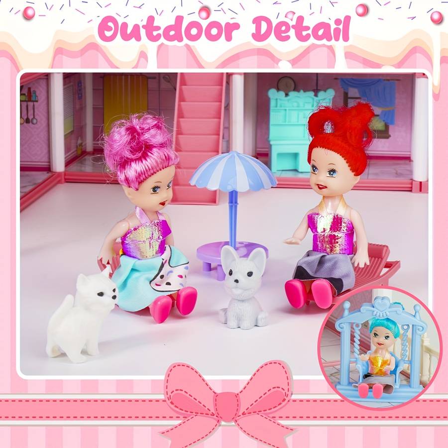 Safe and durable materials: Made from high-quality ABS materials with an enhanced design. The dollhouse for girls is sturdily constructed to prevent any disassembly during play and is built to last. All edges are carefully smoothed. Parents can confidently allow their children to create their own DIY house.