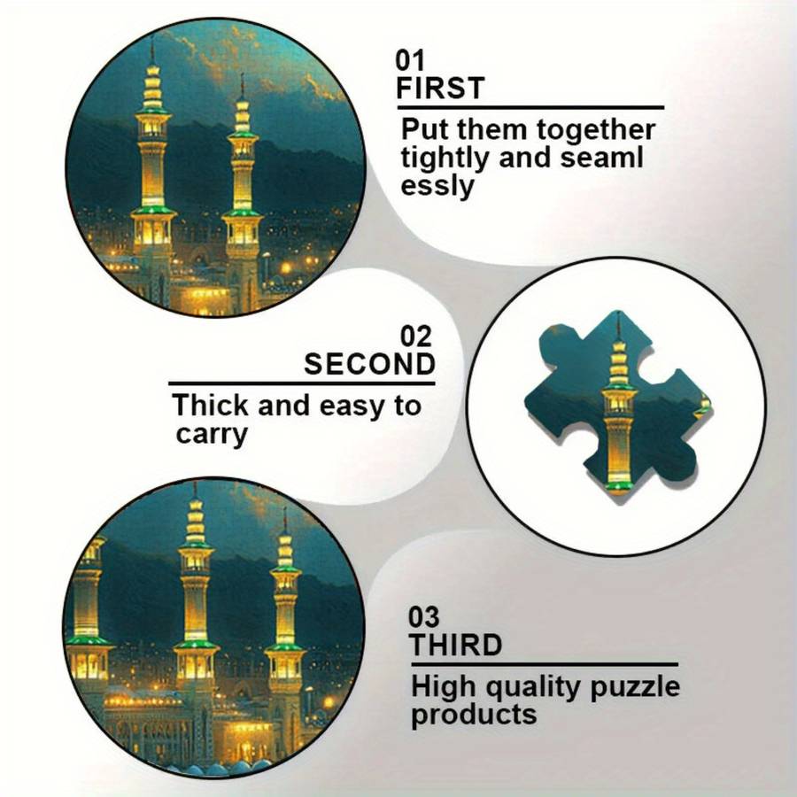 (Specifications are as detailed here. If there are any errors or questions, please contact the buyer. Thank you for viewing.) Note: These building blocks are semi-finished and require self-assembly. They are perfect as gifts for friends, and can be assembled and sent to friends as a thoughtful gift. 200pcs Islamic Kaaba Mecca Night Scene Jigsaw Puzzle - 60x80cm Large Challenging Major Material:Cardboard Applicable Age Group:14 Years+ Color:Mixed Color