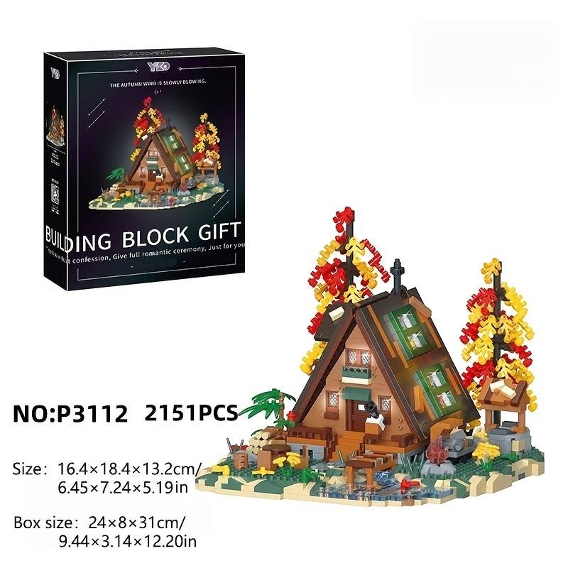 (Specifications are as detailed here. If there are any errors or questions, please contact the buyer. Thank you for viewing.) Note: These building blocks are semi-finished and require self-assembly. They are perfect as gifts for friends, and can be assembled and sent to friends as a thoughtful gift. Autumn Tree House Series Small Particle Building Blocks Without Light String Ver Main Material:ABS Applicable Age Group:6 Years+ Color:Mixed Color