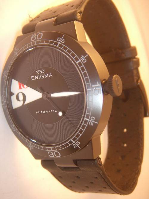 Rotating disc for hours, single handed minutes.....these are scarce watches and expensive brand..