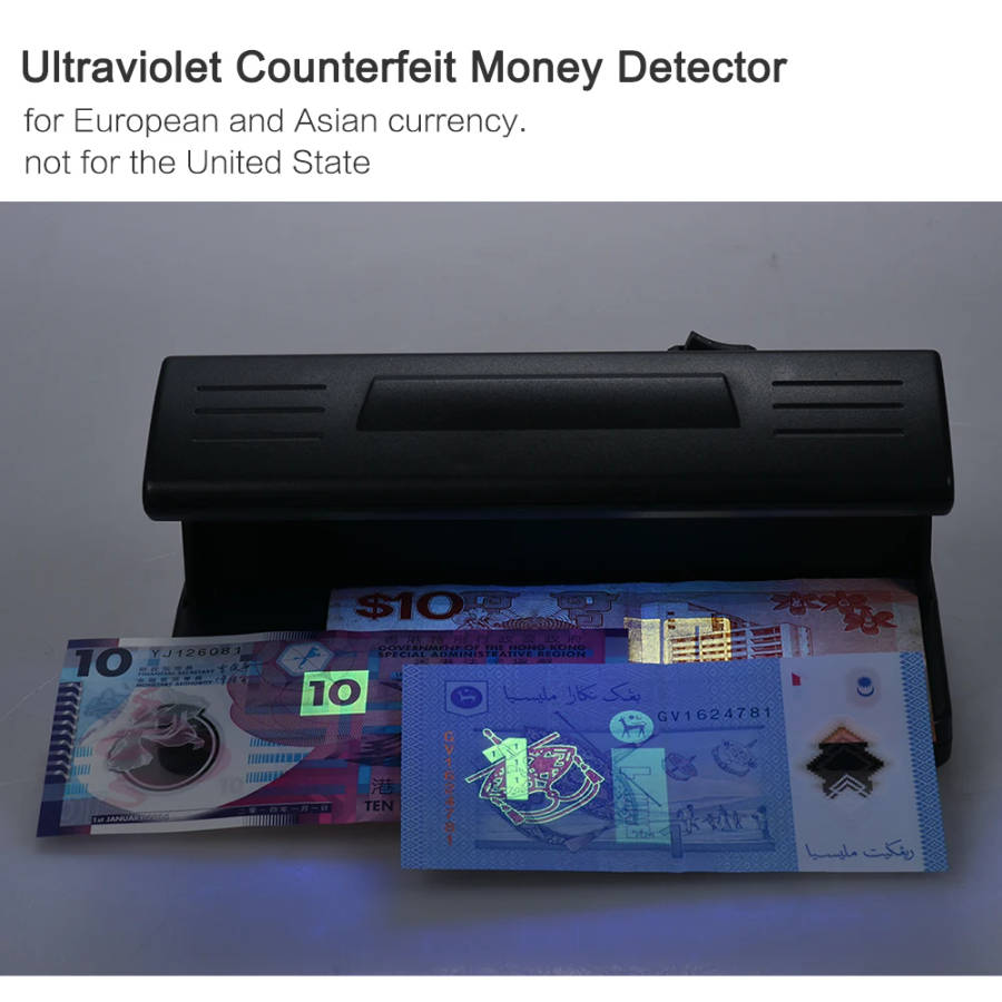 Ultraviolet UV Counterfeit Bill Detector Machine Forged Money Tester Fake Polymer Bank Note Checker for Euro Pound Yen Won Peso