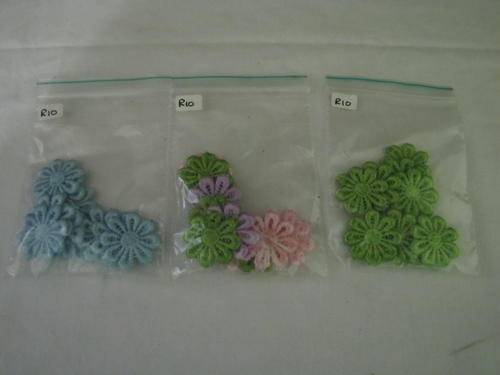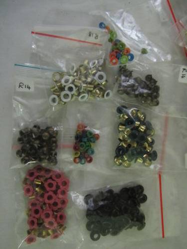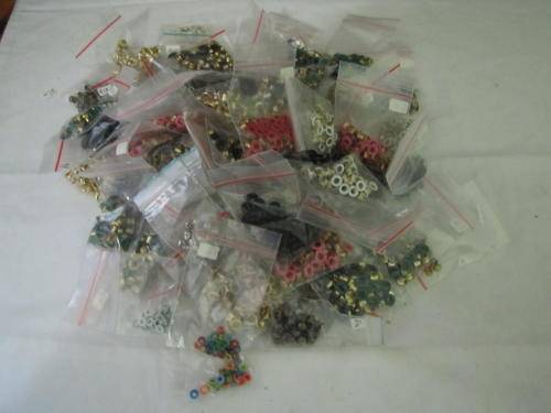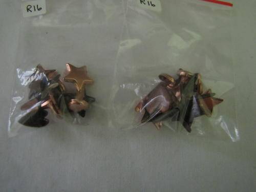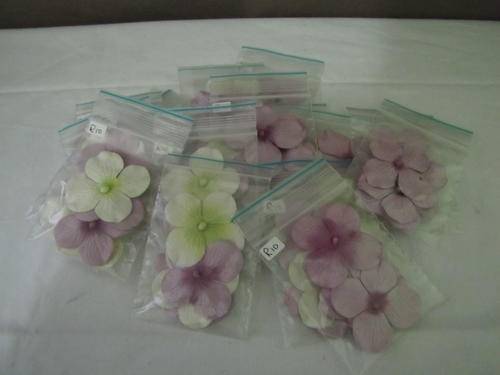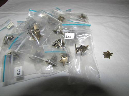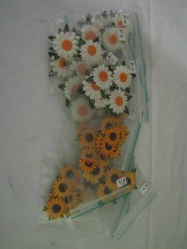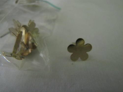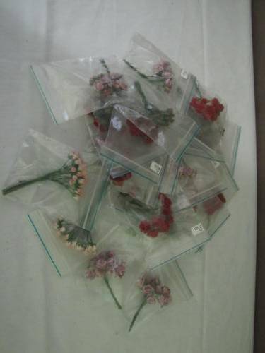 22 PACKETS OF ROSES, 11 PKT DAISY'S, 4 PKT OF PINK NET FLOWERS, 17 PKT OF PANSY'S, 3 PKT EMBROIDED MULTI-COLOUR FLOWERS, 11 PKT OF MIXED LEAVES, 5 PACKETS OF GOLD CLOVER RIVETS, 16 PKT OF SILVER CLOVER RIVETS, 21 PKT OF ANTIQUE COLOURED STARS, 11 PKT OF GOLD STARS, 2 PKT OF BRONZE STARS, 11 PKT OF SILVER STARS, 7 PACKETS OF GOLD ROUNDED STARS AND 75 PACKETS OF RIVETS, EYELETS ETC.