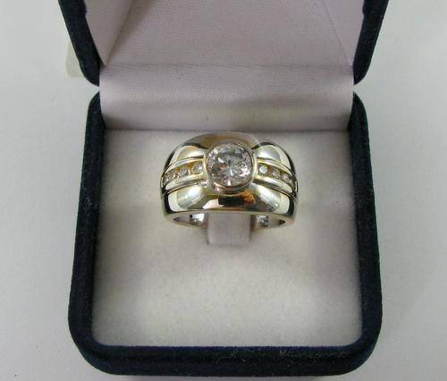 Bulky Heavy Vintage 925 Sterling Silver Ring with Cubic Zirconia.