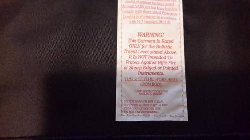 This is used item. Plz read the warning labels and care instructions, to make sure this item lives up to its purpose No manufacturer or seller can give you Guarantee on Bulletproof vests,we give No Guarantees on its ability of this vest, I would rather have one on , than Not ,that dead sure,