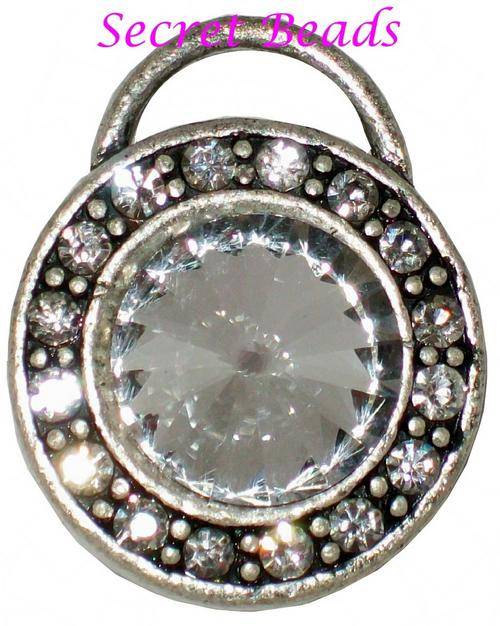 Burnished Silver Pendant - Lilac Faceted Glass & Diamante