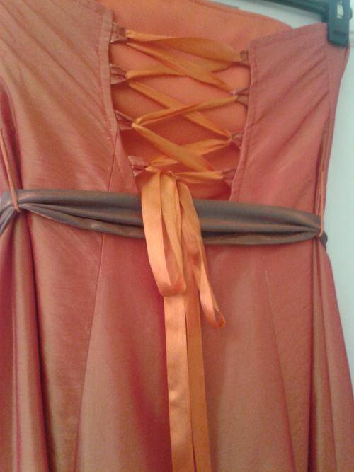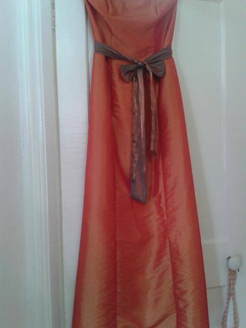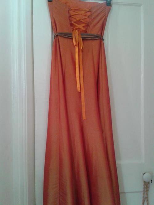 Burnt orange matric farewell/dance/bridesmaids dress. Size 34. Lace up back makes for interesting detail and perfect fit. Detachable belt can be replaced with a different colour of your choice.