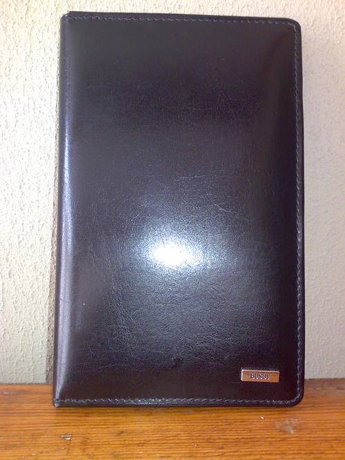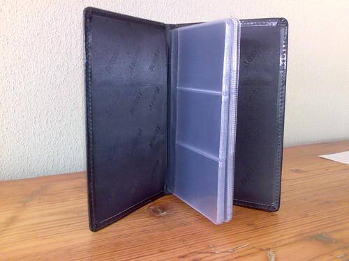 Black bonded leather business card holder. It has 16 sleeves each able to hold 6 business cards (3 in front and 3 on back). It is brand new and in perfect condition. The card holder has never been used, but does not have its original packaging. It has its verification sticker on the back page.
