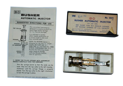 Busher Automatic Injector for use with vaccine syringe 1cc