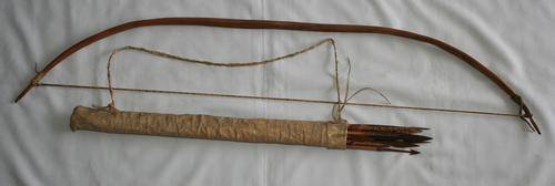 NOW AND THEN THESE ITEMS APPEAR ON BOB BUT NEVER IN THIS GOOD CONDITION AND WITH THE ARROW VARIETY. Its all handmade, hand beaten steel tips fixed with sinew, skin bowstring and quiver...