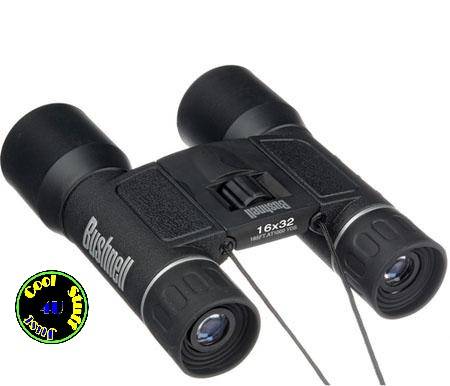 The Bushnell 16x32 mm Powerview Roof Prisms Binocular is a compact 'twin bridge' style roof prism unit that's ideal for travel use in daylight viewing when you need very high magnification. It has fully coated optics, rubber armouring and modern styling. It is small enough to fit in some jacket pockets, as well as a vehicle glove box. Compact 16x32 roof prism binocular with a 3.5degree viewing angle; Fully coated optics; Non-slip rubber armour absorbs shock while providing a firm grip; Contemporary styling; Fold-down rubber eyecups.
