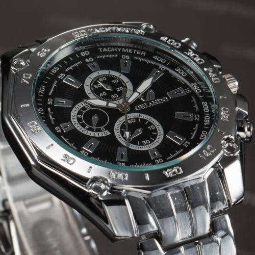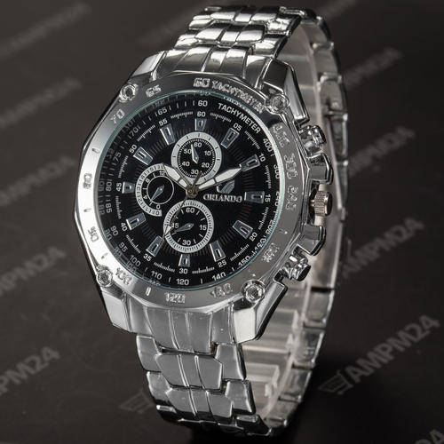MEN'S WHITE DIAL ORLANDO SILVER STAINLESS STEEL ANALOGUE SPORT QUARTZ WRIST WATCH