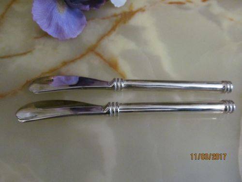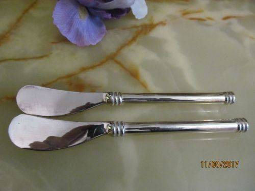 PAIR OF SILVER PLATED DESIGNER BUTTER KNIVES - COLLECTABLES