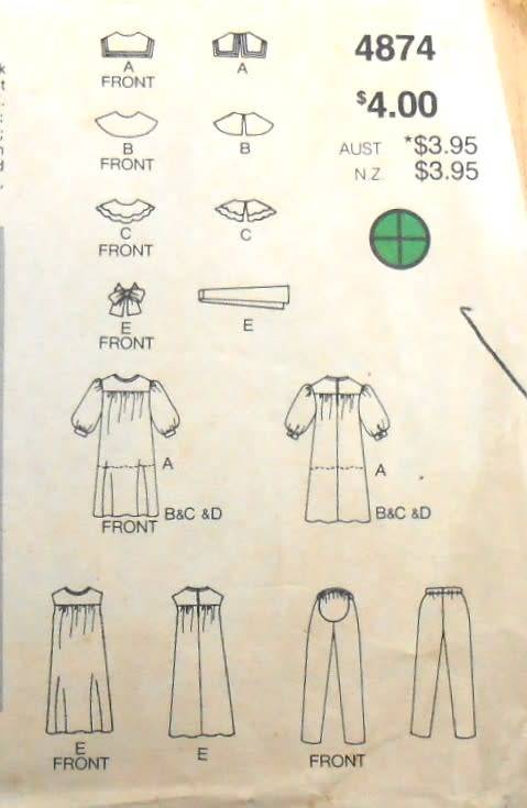 BUTTERICK 4874 MATERNITY DRESS-TUNIC-DETACHABLE COLLARS-PANTS SIZE 12 COMPLETE BUTTERICK 4874 MATERNITY DRESS-TUNIC-DETACHABLE COLLARS-PANTS SIZE 12 COMPLETE