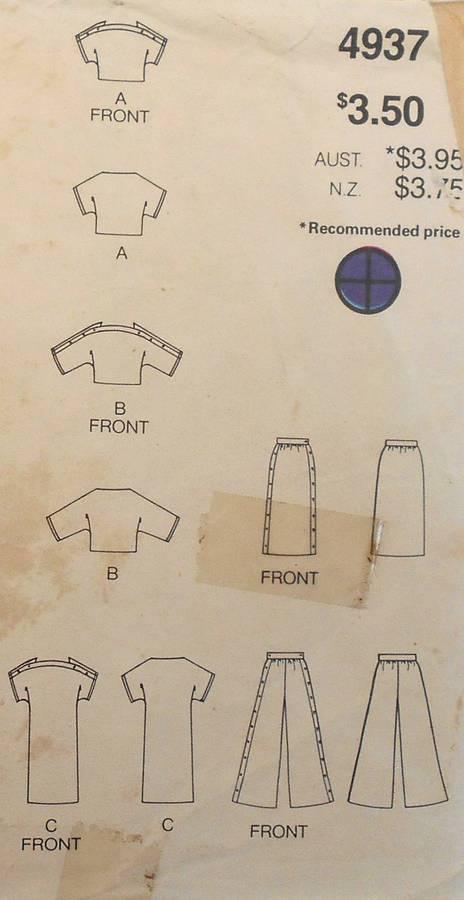 BUTTERICK 4937 DRESS-TOP-SKIRT-PANTS SIZE 12-14-16 COMPLETE-CUT TO 16 BUTTERICK 4937 DRESS-TOP-SKIRT-PANTS SIZE 12-14-16 COMPLETE-CUT TO 16