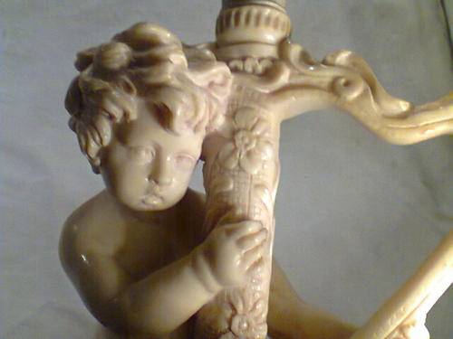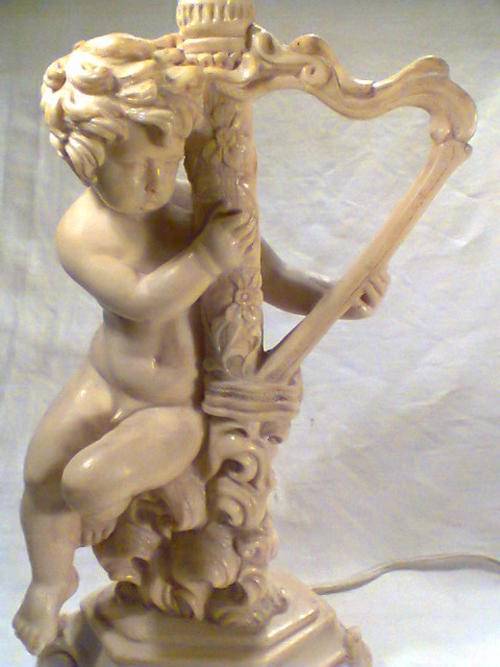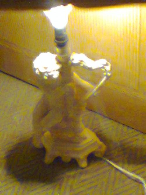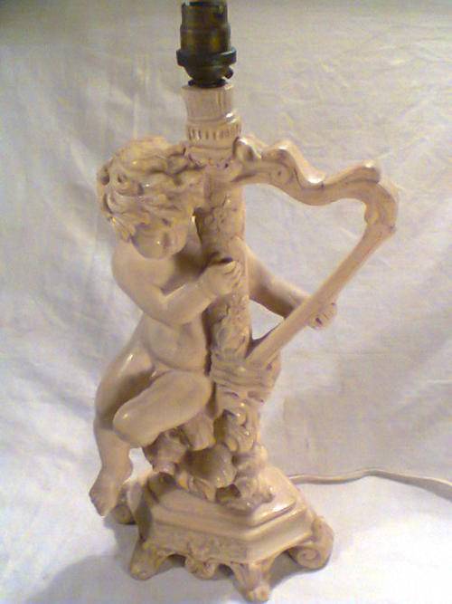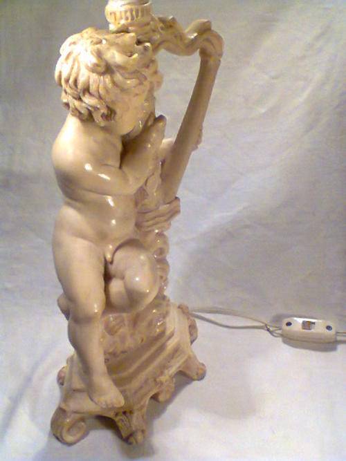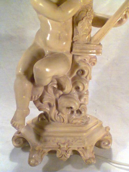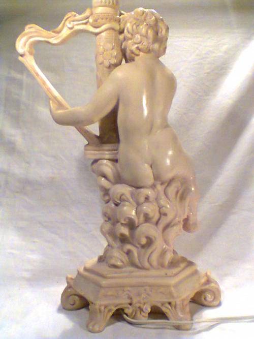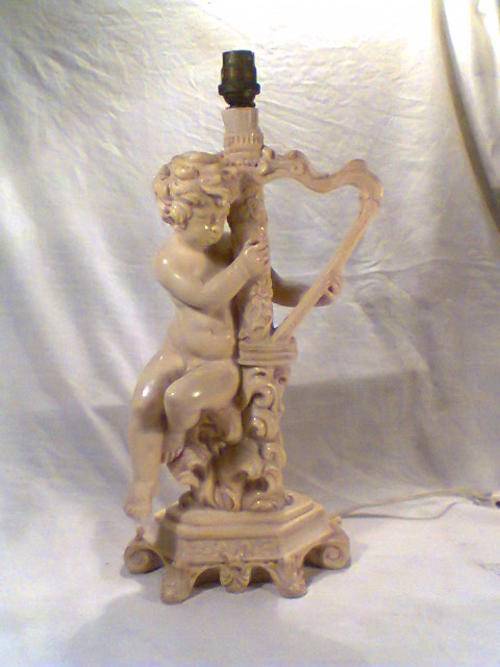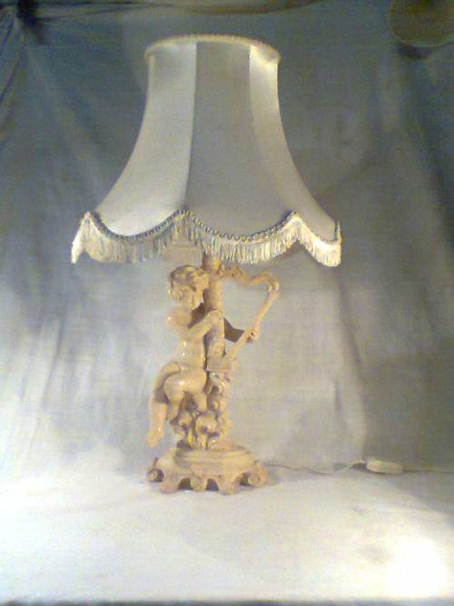 A Beautiful Large Old Vintage Lamp Signed by " Le Ron ". With Original Shade. Size of Lamp only with out shade: 425mm Tall x 200mm Wide. An Ideal Display Item.In working condition.