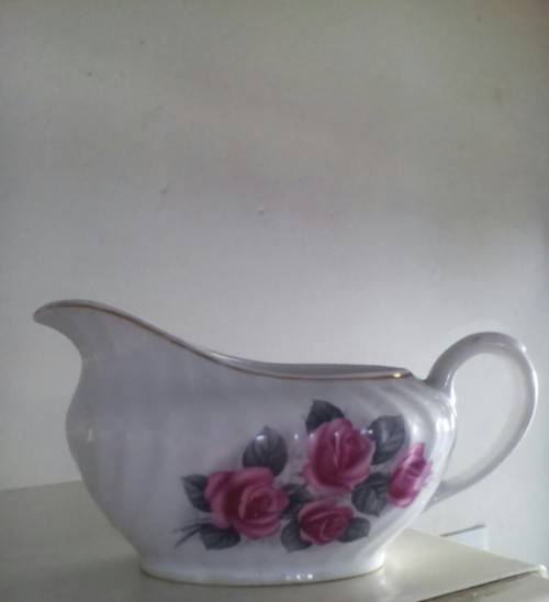 C 1950 Royal Wessex Alicia sauce boat Swirled body decorated with sprays of full blown pink roses. Measures 195mm across. .Age related wear and tear but overall good condition.