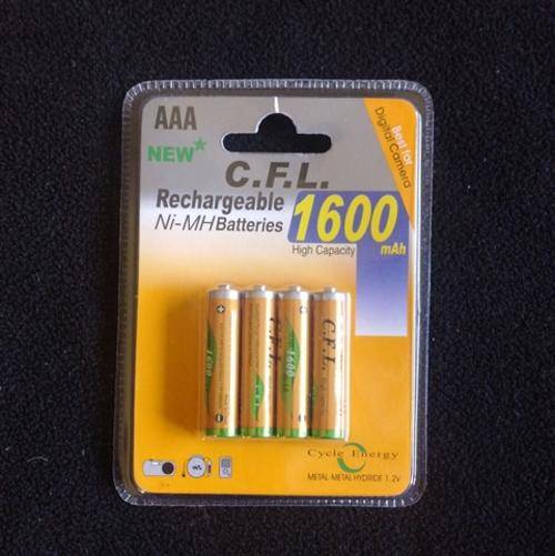C.F.L. 1600 mAh AAA RECHARGEABLE Ni-MH BATTERIES!! 4 Batteries per pack - 20 to Go!!