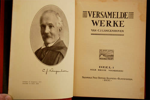 TITLE: VERSAMELDE WERKE - FULL 16 VOLUME SET AUTHOR: C.J. LANGENHOVEN DESCRIPTION: HARDCOVER WITH MINOR EDGE WEAR. VOLUME 1 PRINTED 1935 THROUGH VOLUME 16 - PRINTED 1958. HAS PREVIOUS OWNER'S NAME ON INSIDE COVER AND SOME TANNING TO PAGES. FEEDBACK: I TYPICALLY WAIT UNTIL ITEM IS RECEIVED BY THE WINNING BIDDER PRIOR TO POSTING FEEDBACK. THIS ALLOWS BOTH PARTIES TIME TO RESOLVE ANY ISSUES THAT MAY ARISE WITH ANY GIVEN TRANSACTION. POSTAGE: R22.00 ANYWHERE IN SOUTH AFRICA. PLEASE ENQUIRE FOR DISCOUNT ON MULTIPLE ITEM PURCHASES. BANK CHARGES: R10.00 FOR CASH DEPOSITS. EFT TRANSACTIONS FREE OF CHARGE. |