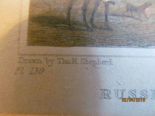 THE ORIGINAL IS DRAWN BY THO.H.SHEPHERD AND ENGRAVED BY C.MOTRAM. THIS ITEM IS PLATE 130 AND IS FRAMED IN A VINTAGE CARVED WOODEN FRAME PAINTED GOLD WITH A BLACK BORDER. THE FRAME HAS A BACK BOARD AS WELL AS PROTECTIVE GLASS AND IS WIRED TO BE HUNG UP.