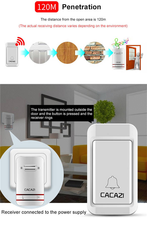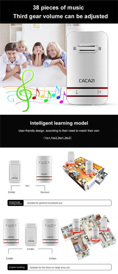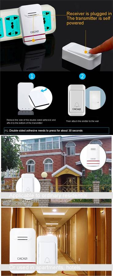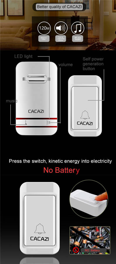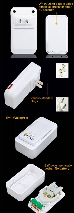 AC100-220V Battery-free wireless doorbellno battery need and no wire.