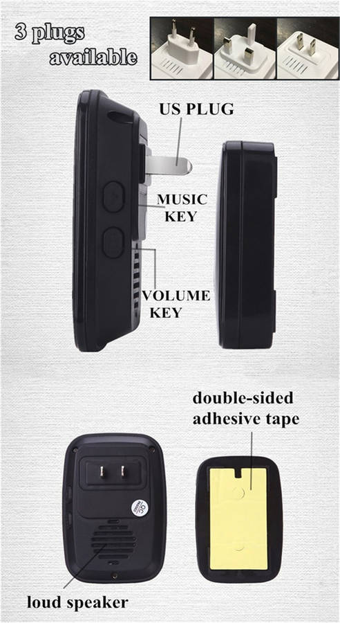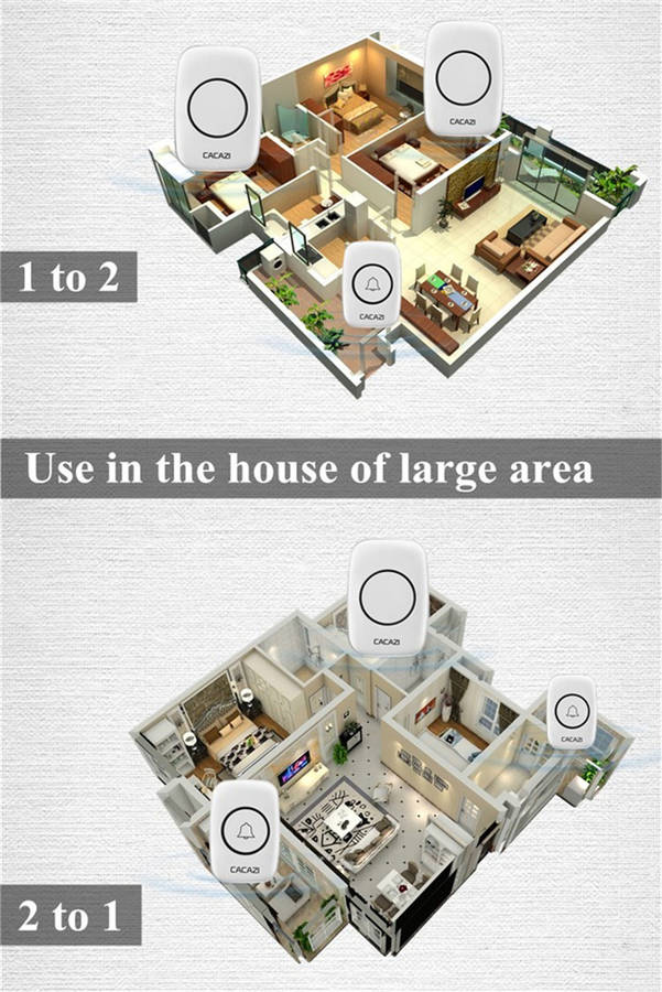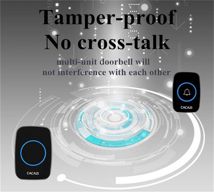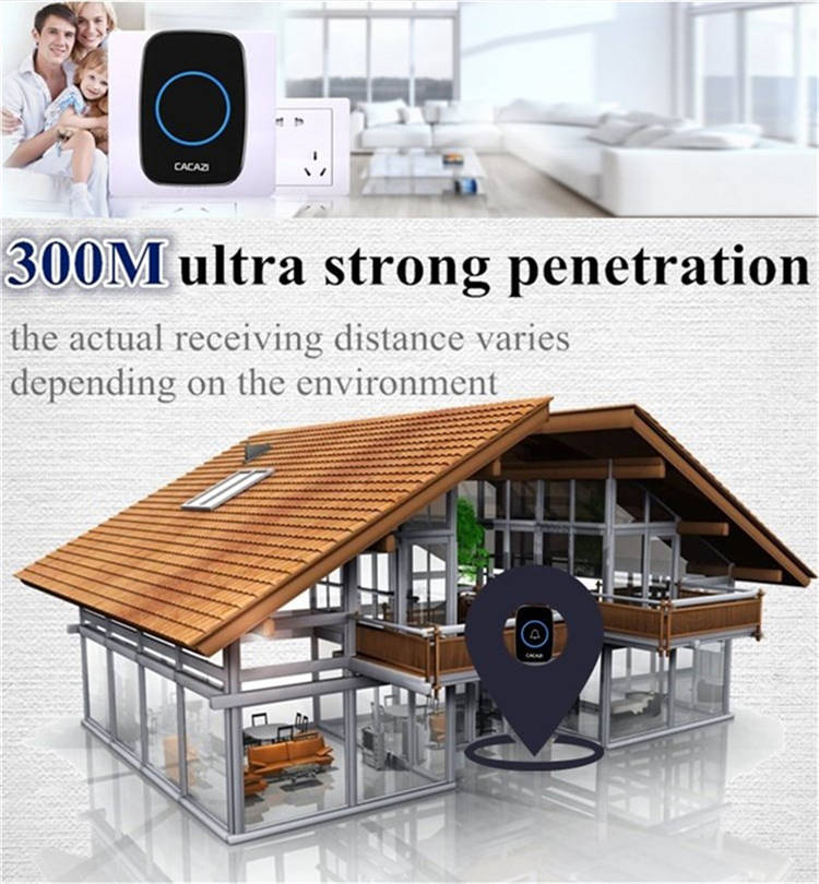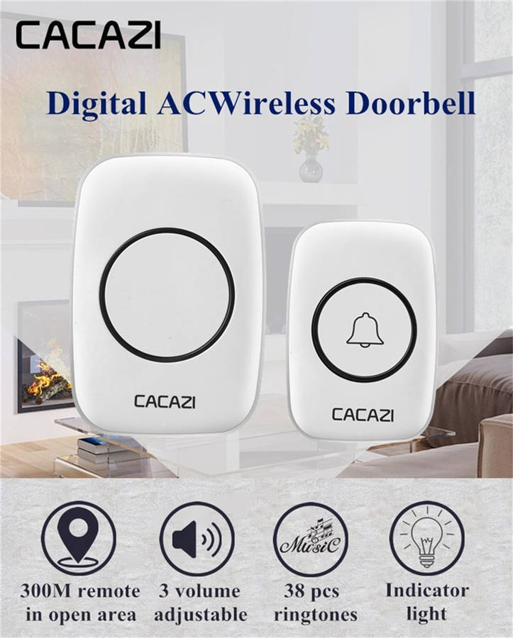 CACAZI LED Smart Doorbell Waterproof 300M Remote Mini Wireless Door Bell 38 Chimes 20-85dB Door Ring