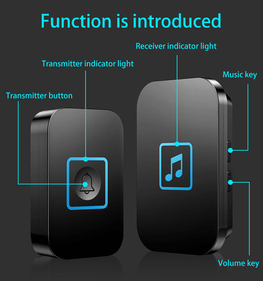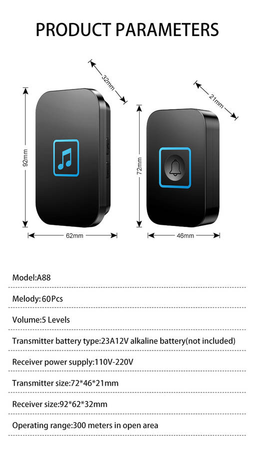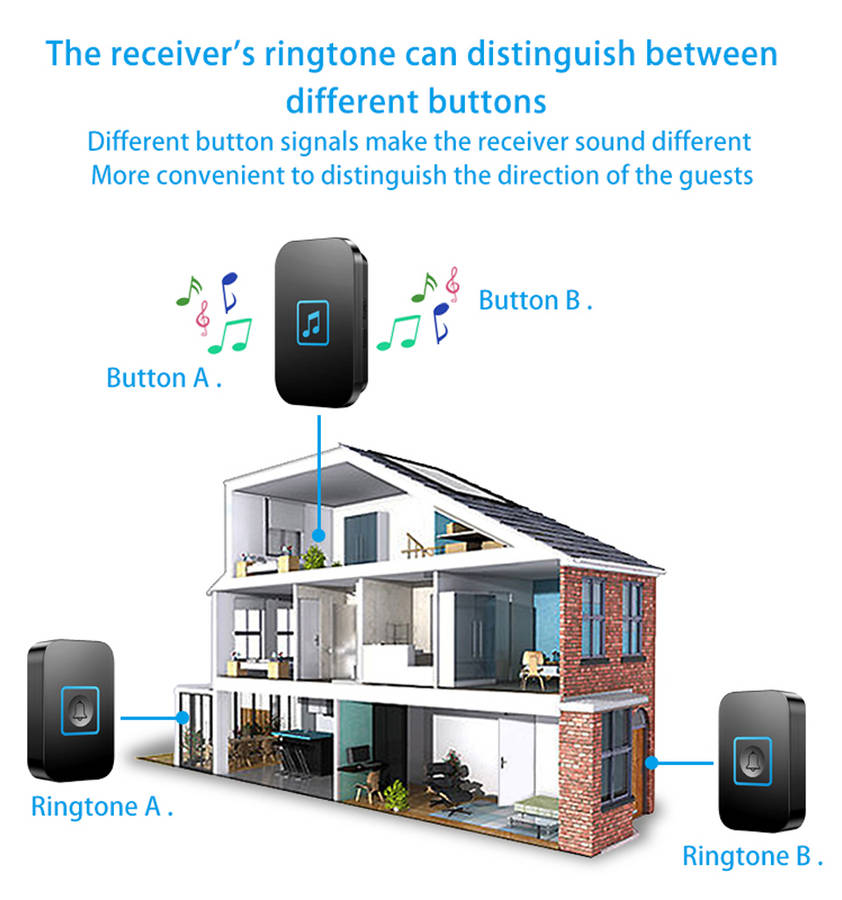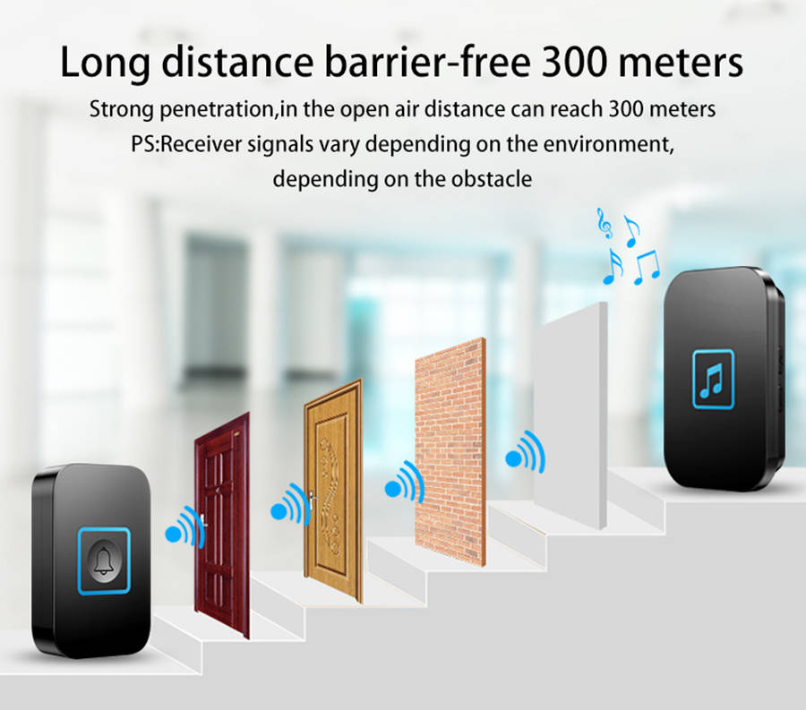 CACAZI Wireless Doorbell Waterproof 300M Remote Battery 2 Butto... (COLOR.: WHITE | ADAPTOR: USPLUG)